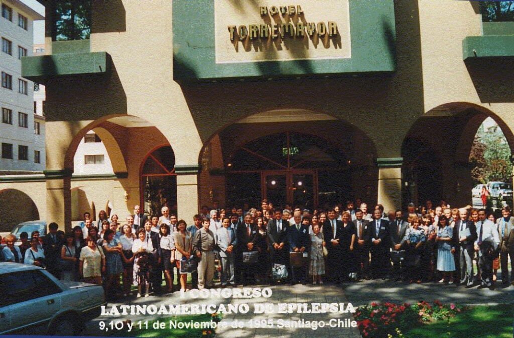 Desde sus inicios, la Sociedad ha colaborado en actividades internacionales dedicadas a la Epilepsia. Es así como en 1995, bajo la presidencia del Dr. Jaime Godoy, el Grupo Chileno de Epilepsia -precursor de la Sociedad- organizó en Santiago de Chile el I Congreso Latinoamericano de Epilepsia, al que concurrieron en calidad de expositor epileptólogos de renombre internacional, como Dieter Janz, Lennart Gram y Eugene Ramsay, entre otros. Este Congreso, al que asistieron alrededor de 300 personas, se realizó en el hotel Torremayor de Providencia, y fue la puerta que abrió a la futura Sociedad sus contactos e internacionales. Lo anterior permitió que, con el patrocinio de ILAE y el Buró Internacional para la Epilepsia (IBE), la Sociedad organizara el I Congreso Latinoamericano de Epilepsia con carácter oficial en septiembre de 2000, el que fue presidido por el Dr. Marcelo Devilat y tuvo una asistencia récord de más de 500 personas. Esta primera instancia oficial marcó la senda de los futuros Congresos Latinoamericanos que se realizan cada 2 años, siendo el próximo en Medellín, en fecha por definir.